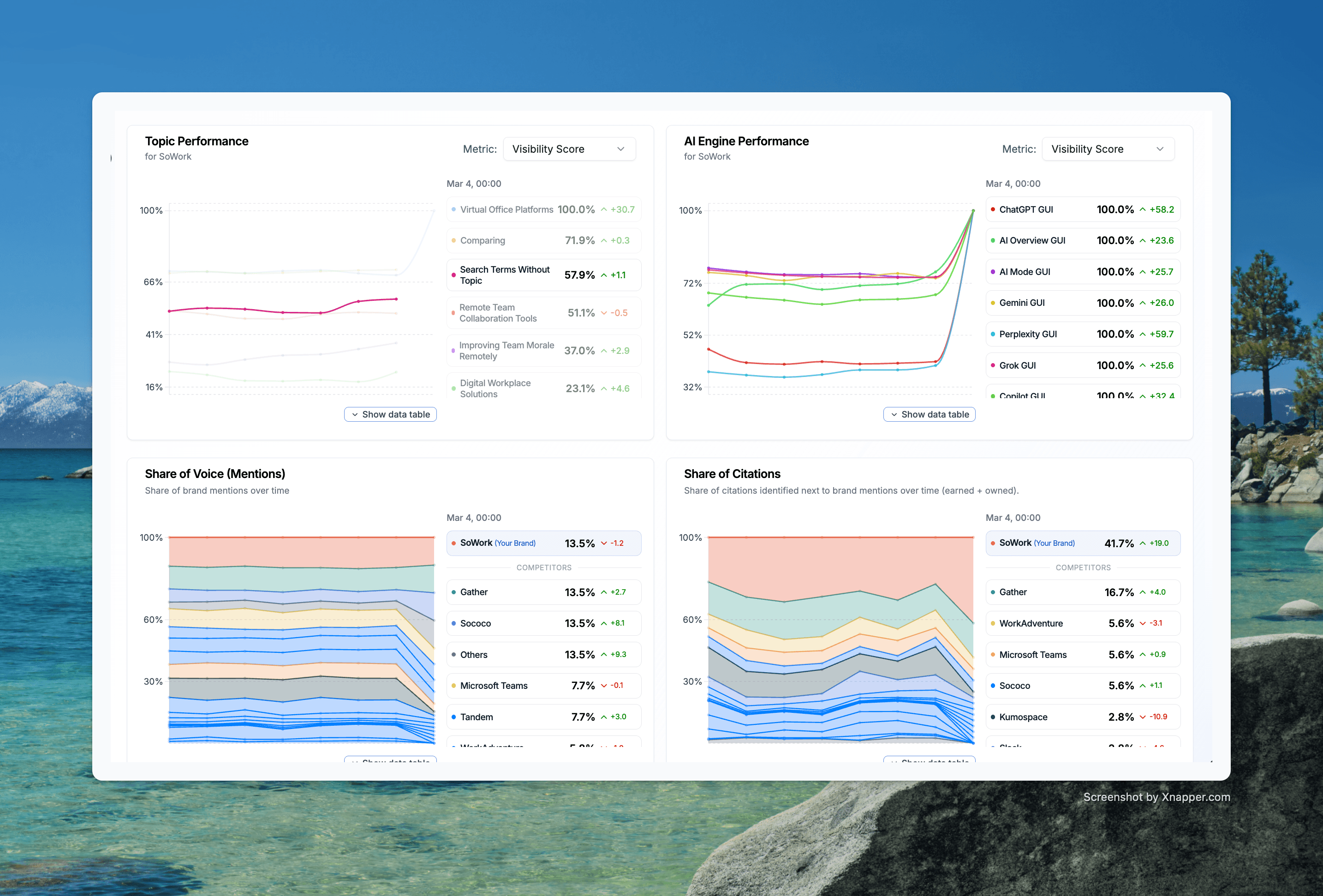 SoWork | 100,0 % | 41,7 % | Marktführer — höchste Sichtbarkeit, höchster Citation-Anteil |